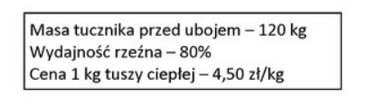 Na podstawie podanych założeń określ przychód ze sprzedaży 50 tuczników.