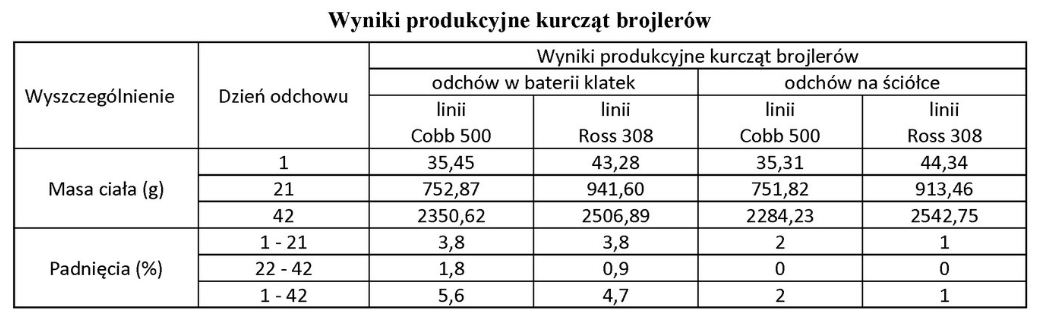 Przeanalizuj wyniki produkcyjne kurcząt brojlerów w różnych systemach chowu i wskaż najbardziej wydajną linię towarową kurcząt oraz system chowu, w którym 6-tygodniowe ptaki osiągają najlepsze wyniki.
