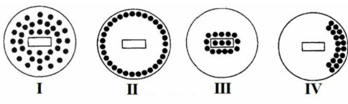 Który rysunek przedstawia rozmieszczenie kurcząt przy zbyt niskiej temperaturze panującej pod promiennikiem ciepła?